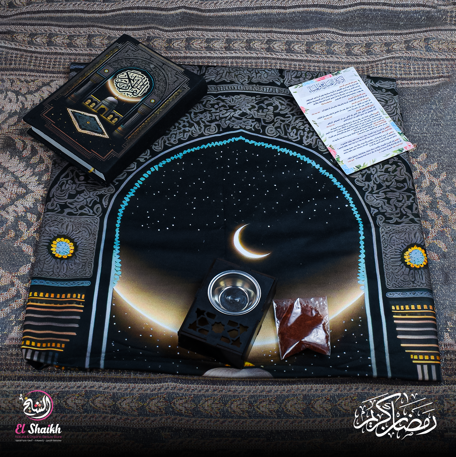 - بوكس رمضان مكون من ( مصلية + مصحف + مبخرة + اذكار+ بخور )