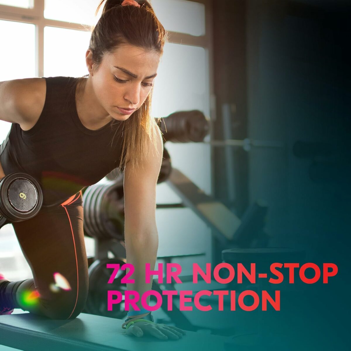 - تقنية موشن سينس (MOTIONSENSE): يوفر مضاد التعرق المثبت سريريًا تقنية فريدة للتحكم في الرائحة تعمل بالحركة والتي تستمر في العمل عندما تتوقف مضادات التعرق الأخرى لمدة 48 ساعة