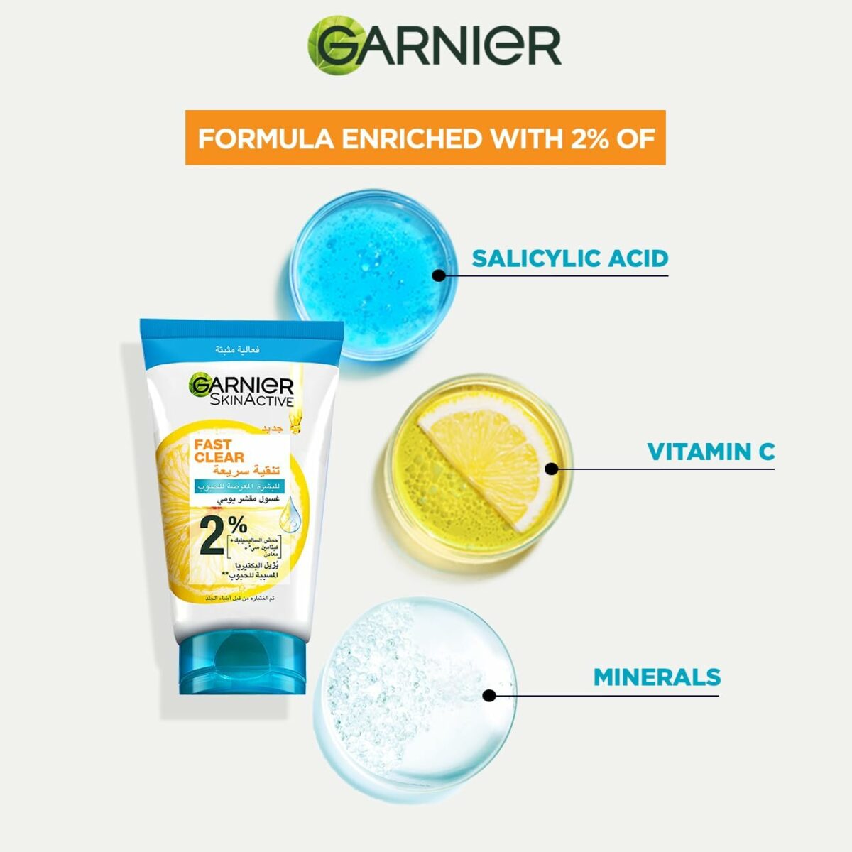 غارنية غسول مقشر فاست كلير للبشرة المعرضة للحبوب 150 مل
