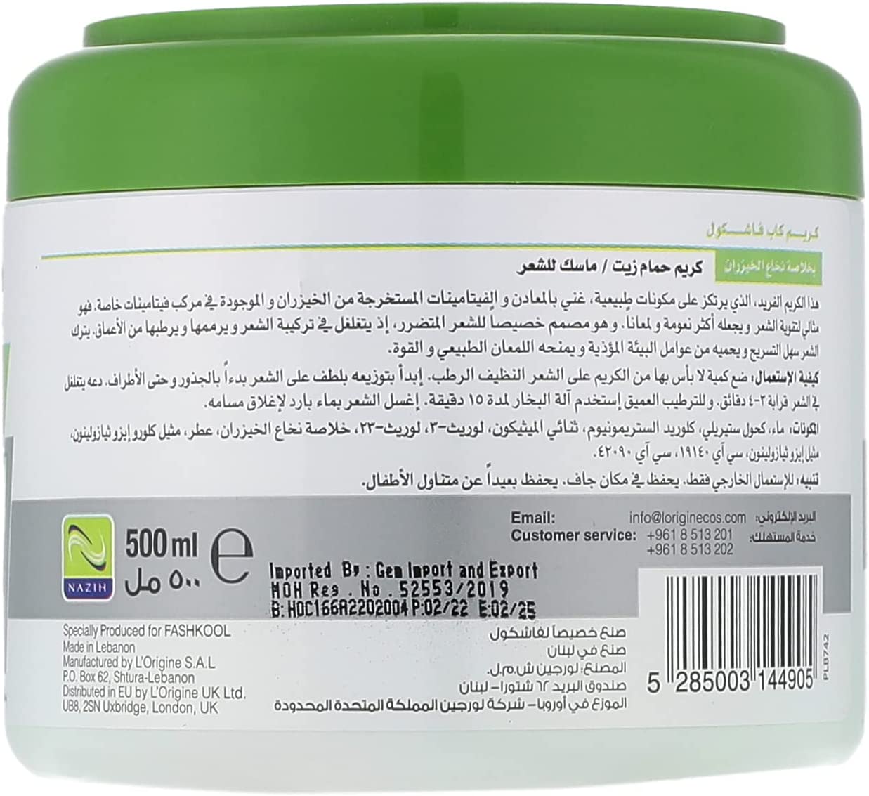 فاشكول قناع الشعر بالزيت الساخن متوفر في عبوة بسعة 500 مل.